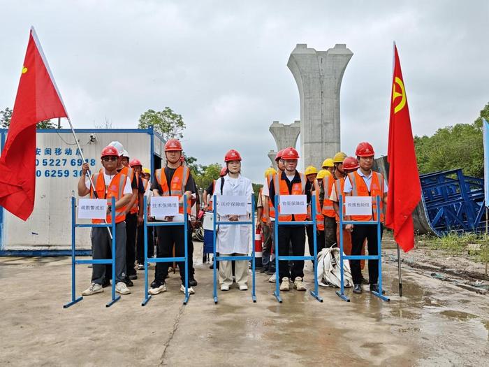 這次演練那叫一個(gè) “真”,直接把場(chǎng)景拉滿:強(qiáng)臺(tái)風(fēng)預(yù)警,施工現(xiàn)場(chǎng)暴雨如注,局部積水,還有一名工人在加固掛籃時(shí)被強(qiáng)風(fēng)一吹,直接高處墜落!項(xiàng)目這邊反應(yīng)賊快,立馬啟動(dòng)高處墜落應(yīng)急預(yù)案。安全管控組、醫(yī)療救護(hù)組、技術(shù)保障組、搶險(xiǎn)救援組、對(duì)外協(xié)調(diào)組這 5 個(gè)應(yīng)急行動(dòng)組瞬間 “上線”,各司其職又配合默契。