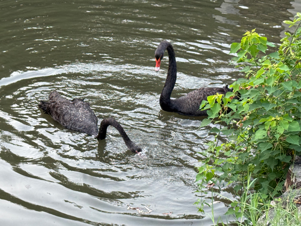 (蘇州美景:波光粼粼,黑天鵝戲水,相映成趣)